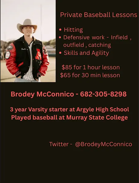 - Ask for private baseball lessons with Coach Brodey McConnico